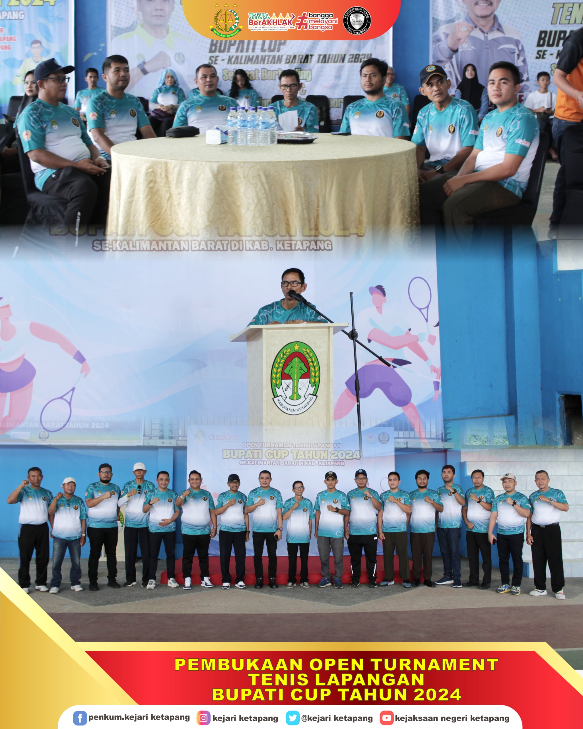 Bertempat di Lapangan PELTI Ketapang, JL. RM Sudiono, Kelurahan Tengah, Kecamatan Delta Pawan, Kabupaten Ketapang, Kepala Kejaksaan Negeri Ketapang diwakili oleh Kepala Subseksi Ekonomi, Keuangan dan Pengamanan Pembangunan Strategis Arief Wirawan Atmaja, S.H menghadiri Undangan Pembukaan Kejuaraan Tennis Lapangan Bupati CUP Se- Kalimantan Barat Tahun 2024.