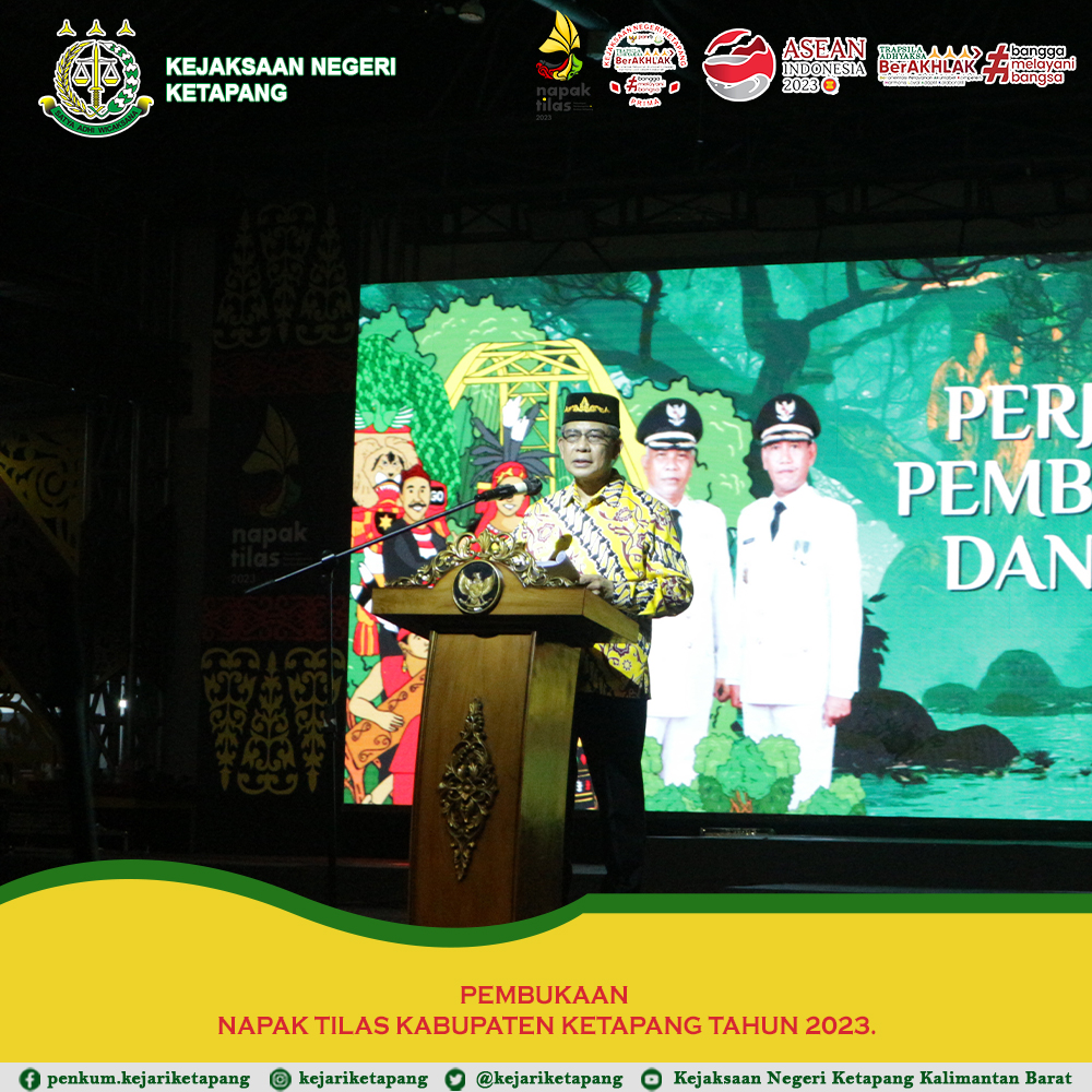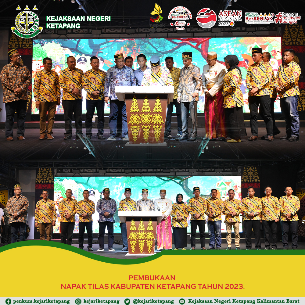 Bertempat di Balai Sungai Kedang, Jalan Agoes Salim, Kecamatan Delta Pawan, Kabupaten Ketapang. Kepala Kejaksaan Tinggi Kalimantan Barat Dr. Drs. Muhammad Yusuf, S.H, M.H, bersama Koordinator dan Kabag TU Kejati Kalbar, dan Kepala Kejaksaaan Negeri Ketapang Ibu RA. Dhini Ardhany, S.H., M.H. Menghadiri Pembukaan Napak Tilas Kabupaten Ketapang Tahun 2023. Bahwa Kepala Kejaksaan Tinggi Kalimantan Barat memberi Kata Sambutan dan melakukan Penandatanganan Prasasti Jembatan Tanjungpura Baru.