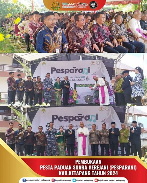 Bertempat di Khatolik Center Ketapang, Kepala Kejaksaan Negeri Ketapang diwakili oleh Jaksa Fungsional Junior Willem John Latumeten, S.H. menghadiri Pembukaan Kegiatan Pesta Paduan Suara Gerejani (Pesparani) Kabupaten Ketapang Tahun 2024.