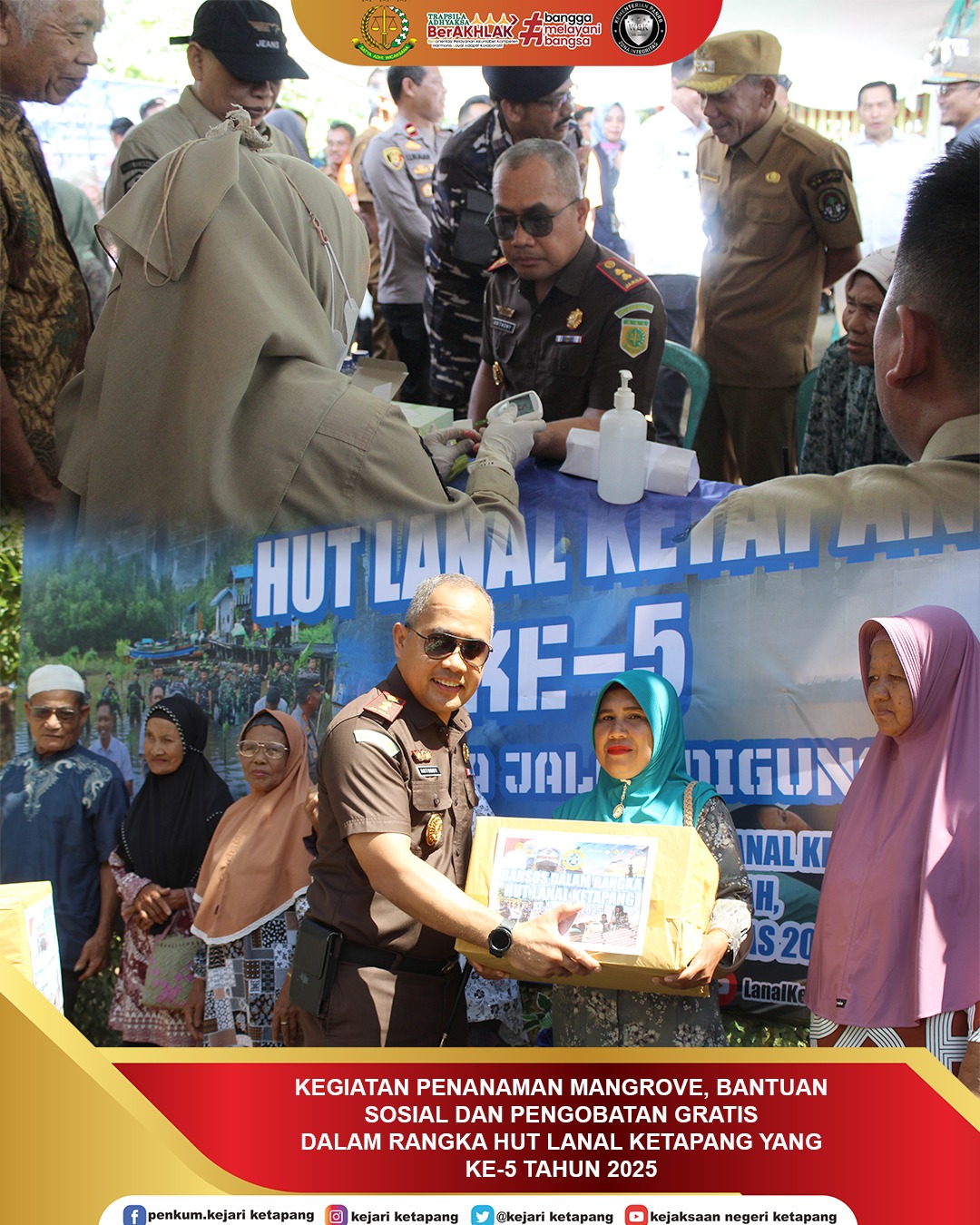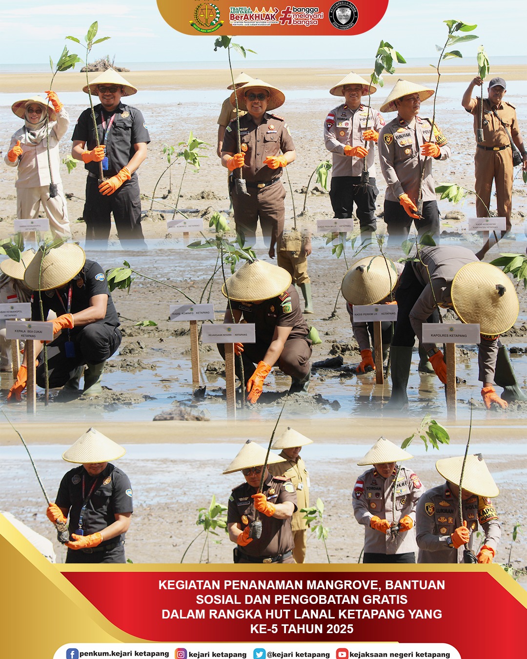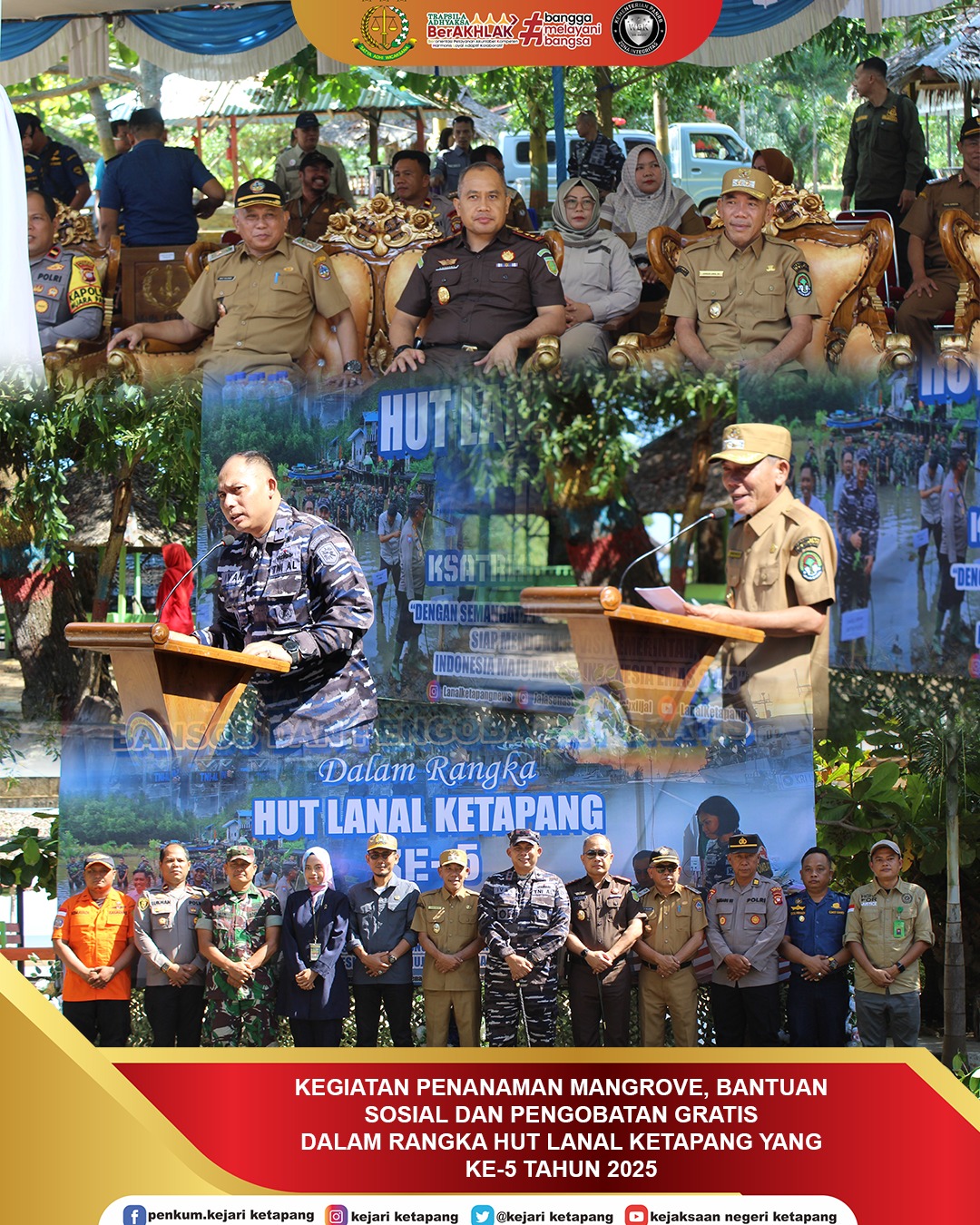Bertempat di Pantai Air Mata Permai Desa Sungai Awan Kanan Kab. Ketapang, Kepala Kejaksaan Negeri Ketapang Bapak Anthony Nainggolan, S.H, M.H, menghadiri Kegiatan Penanaman Mangrove, Bantuan Sosial dan Pengobatan Gratis dalam rangka HUT Lanal Ketapang yang ke – 8 Tahun 2025.