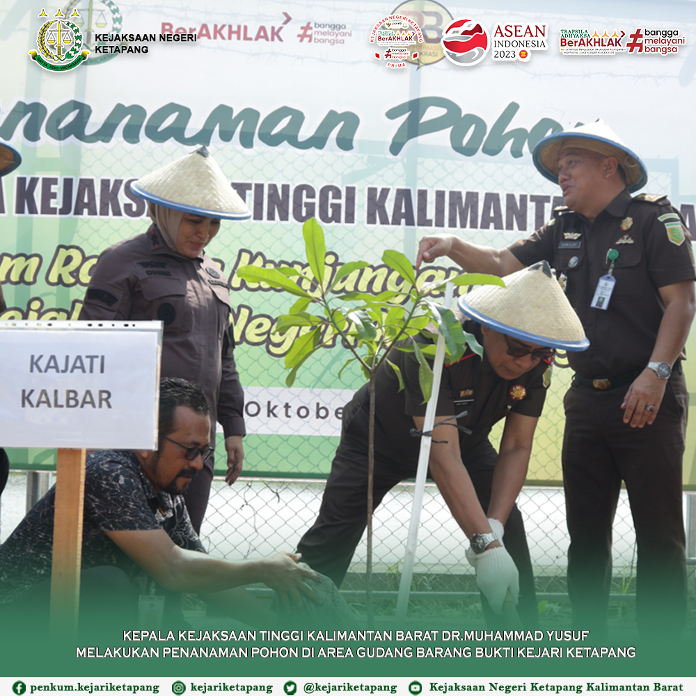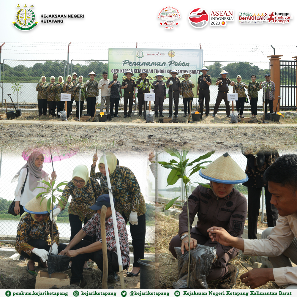 Bertempat di Gudang Barang Bukti Kejaksaan Negeri Ketapang, Jalan Karya Tani, Kelurahan Sukaharja, Kecamatan Delta Pawab, Kabupaten Ketapang. Kepala Kejaksaan Tinggi Kalimantan Barat Bapak Dr. Drs. Muhammad Yusuf, SH, MH, bersama Ibu Ketua IAD Wilayah Kalimantan Barat, Ny. Jamilah Yusuf, Beserta para Koordinator, Kabag TU Kejati Kalbar, Kepala Kejaksaan Negeri Ketapang Ibu RA. Dhini Ardhany, S.H., M.H., dan Ibu-Ibu IAD Wilayah Kalimantan Barat dan IAD Daerah Ketapang Melakukan Penanaman Pohon dalam rangka Kunjungan Kerja di Wilayah Hukum Kejaksaan Negeri Ketapang.