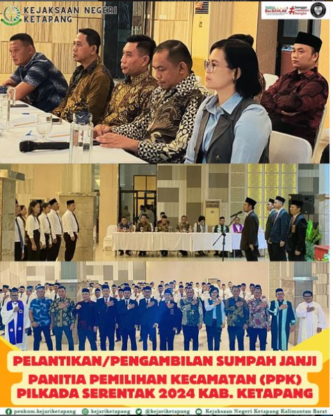[Kamis, 16 Mei 2024] Bertempat di Aston Ketapang City Hotel, Kepala Seksi Pengelolaan Barang Bukti dan Barang Rampasan, Ibu Wara Endrini, ST, SH, MH. Menghadiri Undangan dari Komisi Pemilihan Umum Kabupaten Ketapang dalam Agenda Pelantikan Anggota PPK Terpilih pada Pilkada Serentak Tahun 2024.