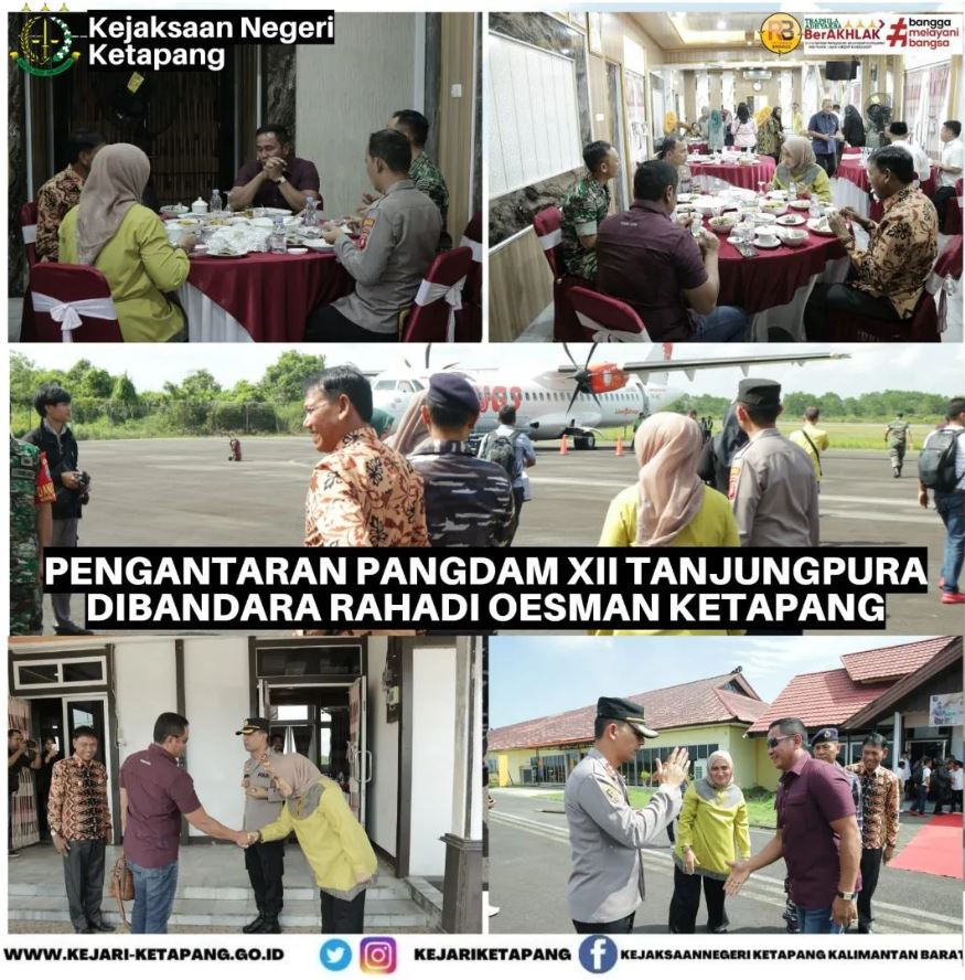 Bertempat di Bandara Rahadi Oesman Jalan Gajah Mada Kecamatan Delta Pawan Kabupaten Ketapang, Kepala Kejaksaan Negeri Ketapang RA. Dhini Ardhany, S.H., M.H. menghadiri Pengantaran Pangdam XII / TPR Mayjen TNI Iwan Setiawan, S.E., M.M beserta rombongan dalam rangka kunjungan kerja di wilayah Kabupaten Ketapang.