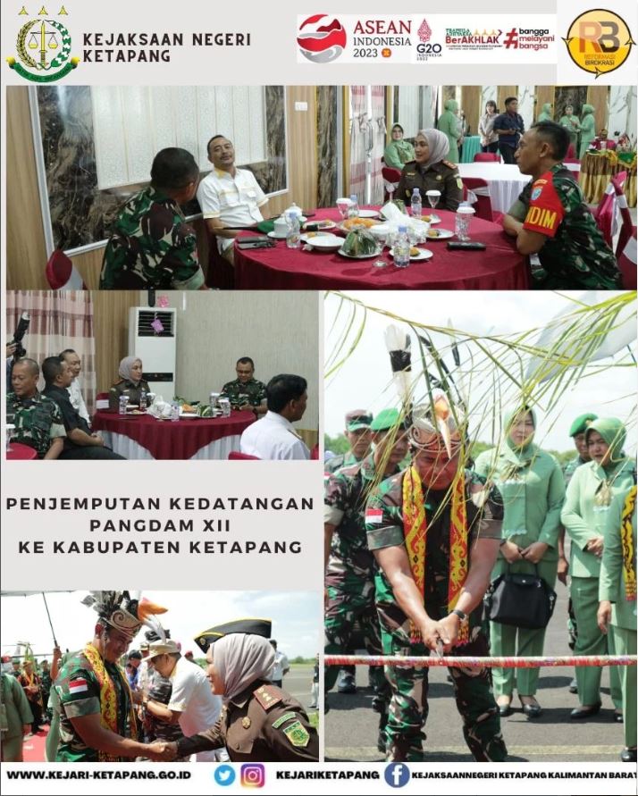 Bertempat di Bandara Rahadi Oesman Jalan Gajah Mada Kecamatan Delta Pawan Kabupaten Ketapang, Kepala Kejaksaan Negeri Ketapang RA. Dhini Ardhany, S.H., M.H. menghadiri penjemputan Pangdam XII / TPR Mayjen TNI Iwan Setiawan, S.E., M.M beserta rombongan dalam rangka kunjungan kerja di wilayah Kabupaten Ketapang.