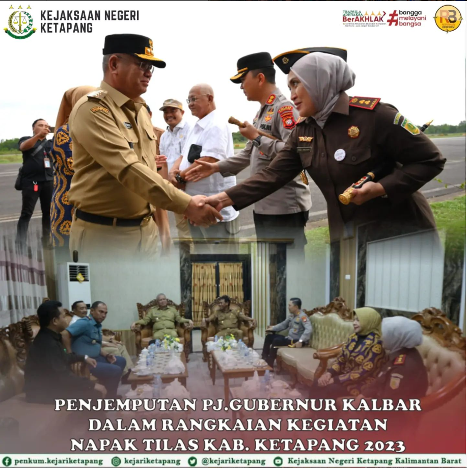 Bertempat di Bandara Rahadi Oesman Jalan Gajah Mada, Kecamatan Delta Pawan, Kabupaten Ketapang. Kepala Kejaksaan Negeri Ketapang, RA. Dhini Ardhany, S.H., M.H. Menghadiri penjemputan PJ. Gubernur Kalimantan Barat, dr. Harisson, M.Kes., beserta rombongan dalam rangka kunjungan Kegiatan Napak Tilas Kabupaten Ketapang Tahun 2023.