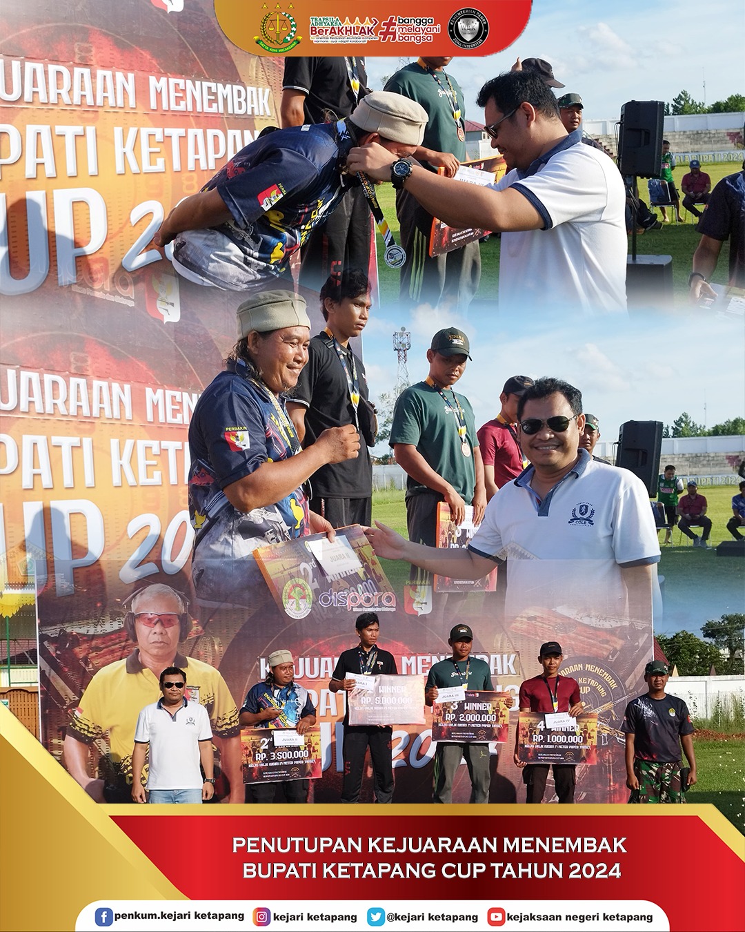 Bertempat di Lapangan Stadion Tentemak Kabupaten Ketapang. Kepala Kejaksaan Negeri Ketapang diwakili oleh Kepala Seksi Intelijen Panter Rivay Sinambela, S.H menghadiri Undangan Penutupan Kejuaraan Menembak Bupati Ketapang CUP Tahun 2024.