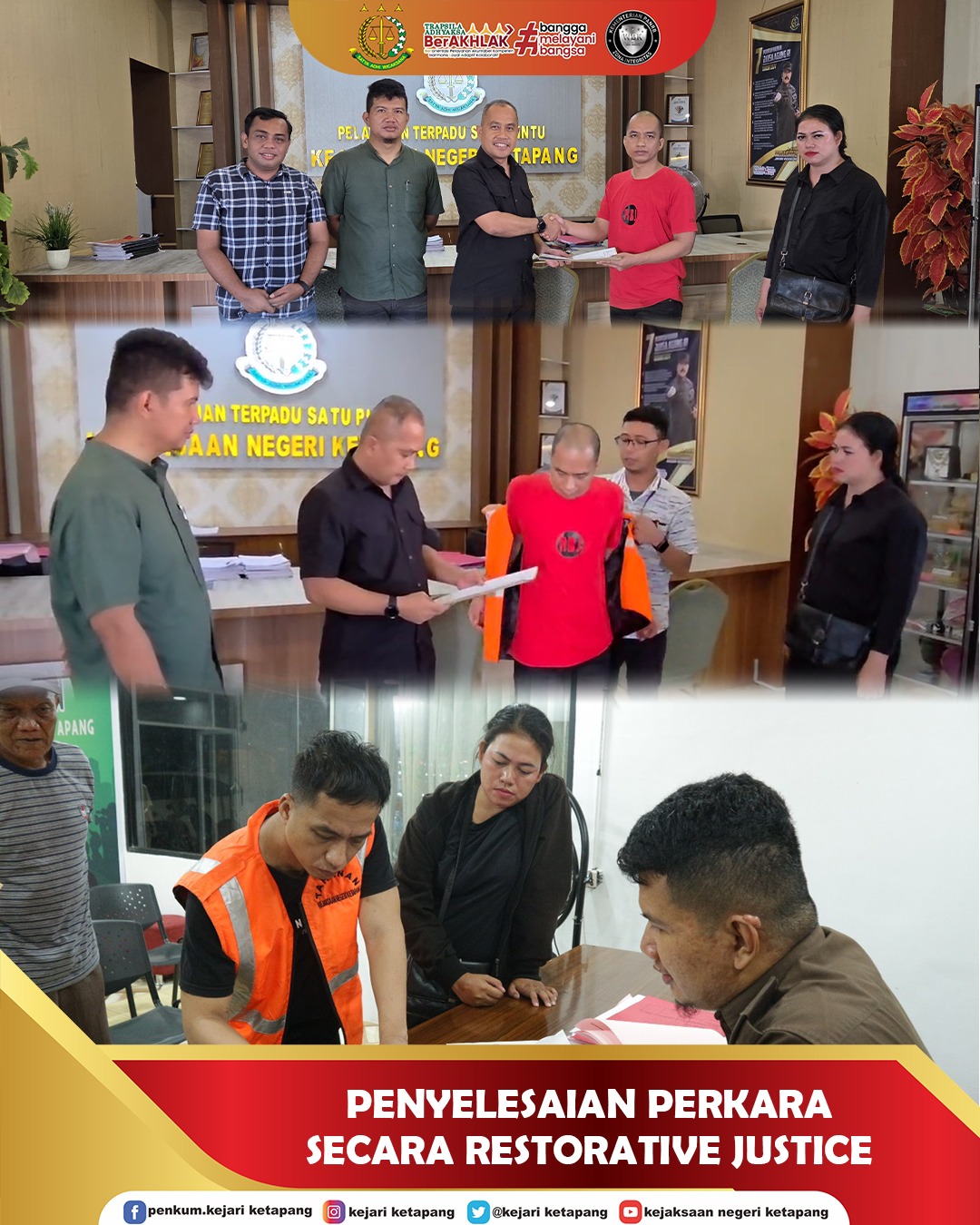 Bertempat di Rumah Restorastive Justice pada Kejaksaan Negeri Ketapang, telah dilaksanakan Pengeluaran dan Penyerahan Tersangka berinisial S kepada keluarganya dengan dihadiri oleh Kepala Kejaksaan Negeri Ketapang Bapak Anthoni Nainggolan, S.H., M.H, Kepala Seksi Tindak Pidana Umum Syahrul Sya’ban, S.H, M.H., Jaksa Fasilitator Fauzan Nur Adima, S.H, Penyidik dan keluarga tersangka. Tersangka disangkakan melanggar ketentuan Pasal 351 Ayat (1) KUHP. Terhadap perkara tersebut diselesaikan melalui upaya Restorative Justice dan di setujui oleh Jampidum.
