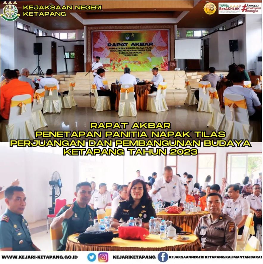 Bertempat di Gedung Pancasila, Jalan Letjend S.Parman , Kecamatan Delta Pawan, Kabupaten Ketapang. Kepala Seksi Pengelolaan Barang Bukt dan Rampasan Wara Endrini, S.T., S.H. M.H. Menghadiri Rapat Akbar Dalam Rangka Pemantapan Panitia Napak Tilas Perjuangan Pembangunan dan Budaya Ketapang Tahun 2023.