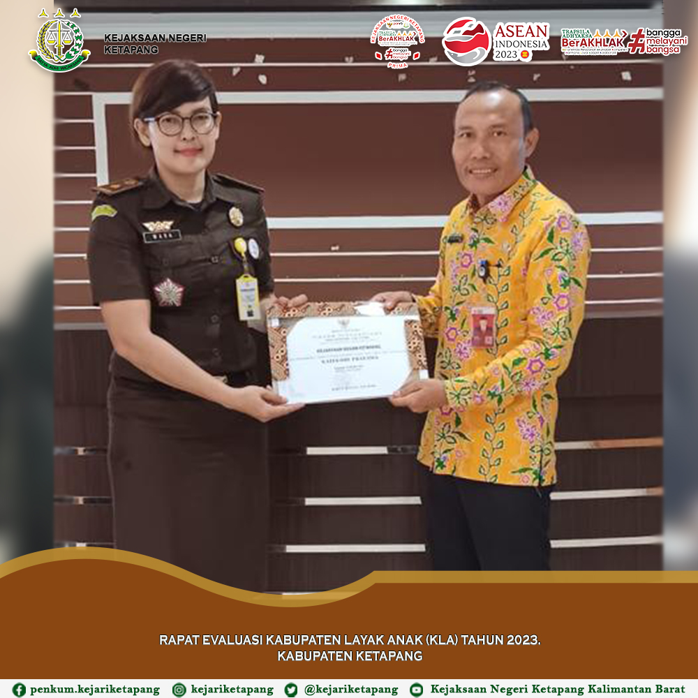 Bertempat di Ruang Rapat Utama Bappeda Ketapang, Jalan. Jend. Sudirman Kecamatan Delta Pawan, Kabupaten Ketapang. Kepala Seksi Pengelolaan Barang Bukti dan Barang Rampasan Wara Endrini, S.T, S.H, M.H. Menghadiri Rapat Evaluasi Kabupaten Layak Anak (KLA) Kabupaten Ketapang Tahun 2023.