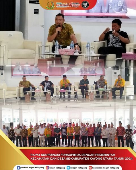 Bertempat di Pendopo (Istana Rakyat) Bupati Kabupaten Kayong Utara, Kepala Kejaksaan Negeri Ketapang diwakili oleh Kepala Seksi Intelijen Panter Rivay Sinambela, S.H, menghadiri Rapat Koordinasi Forkopimda dengan Pemerintah Kecamatan dan Desa se-Kabupaten Kayong Utara Tahun 2024 dengan tema “Meningkatkan Kewaspadaan Dini Pemerintah Daerah Dalam Mensukseskan PILKADA Serentak di Kabupaten Kayong Utara.”