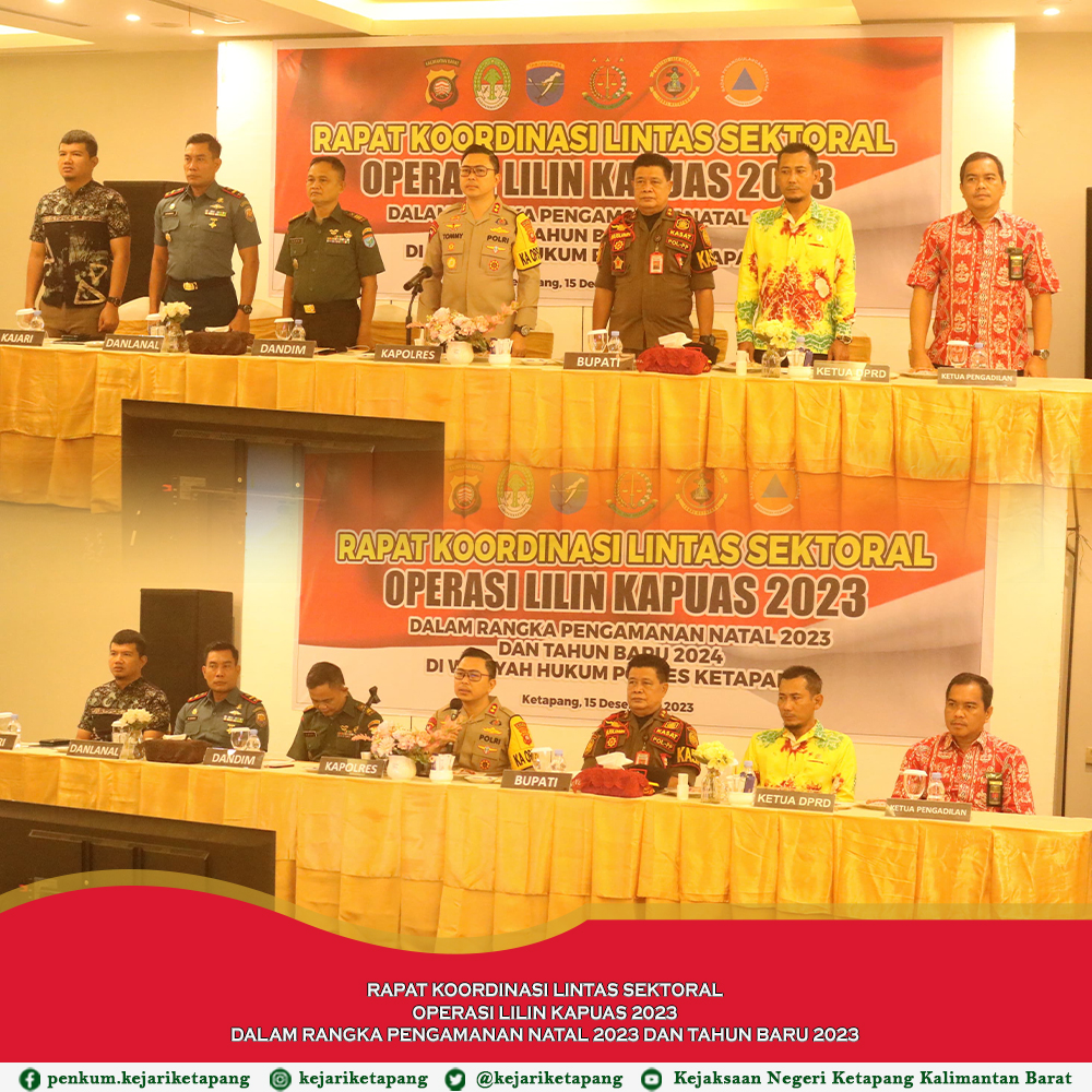 Bertempat di Hotel Nevada Ketapang, Jalan R. Suprapto, Kelurahan Sampit, Kecamatan Delta Pawan, Kabupaten Ketapang, Kepala Kejaksaan Negeri Ketapang diwakili oleh Jaksa Fungsional Fauzan Nur Adima, S.H, menghadiri Rapat Koordinasi Lintas Sektoral Ops Kepolisian Terpusat Lilin Kapuas 2023 dalam rangka Pengamanan Hari Natal 2023 dan Tahun Baru 2024.