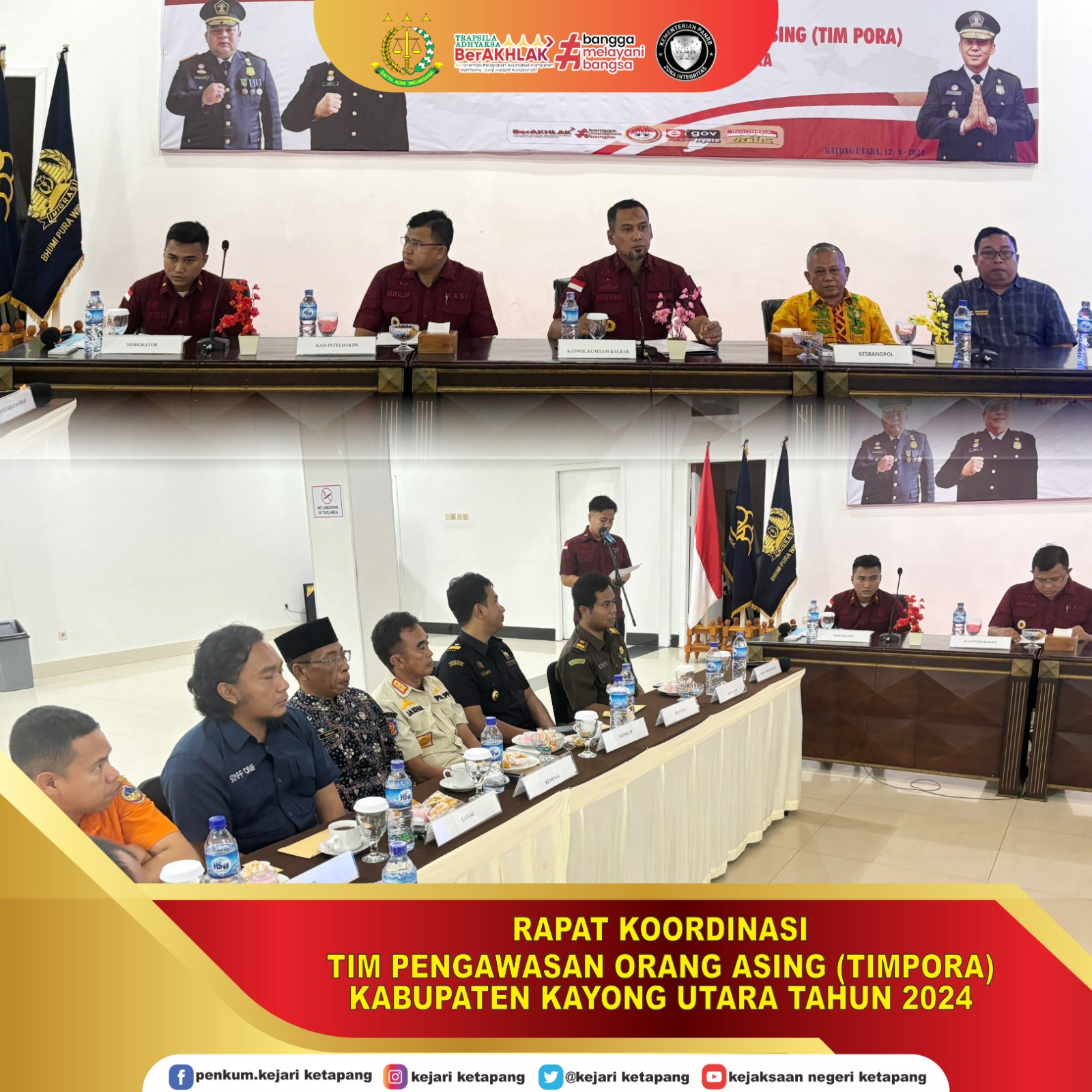 Bertempat di Hotel Mahkota Kabupaten Kayong Utara, Kepala Kejaksaan Negeri Ketapang diwakili oleh Kepala Sub Seksi Ekonomi, Keuangan, dan Pengamanan Pembangunan Strategis, Arief Wirawan Atmaja, S.H., menghadiri Rapat Koordinasi Tim Pengawasan Orang Asing (Tim Pora) Tingkat Kabupaten Kayong Utara Tahun Anggaran 2024 dengan tema “Singkronisasi Aturan Keimigrasian Terkait Keberadaan dan Kegiatan Orang Asing di Kab. Kayong Utara”.