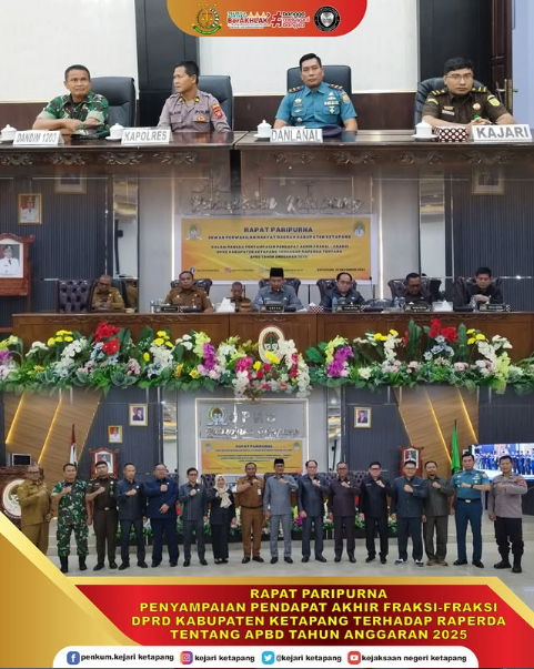 Kepala Kejaksaan Negeri Ketapang diwakili oleh Jaksa Fungsional Seksi Intelijen Junior Willem John Latumeten, S.H, menghadiri Undangan Rapat Paripurna Dalam Rangka Penyampaian Pendapat Akhir Fraksi-Fraksi DPRD Kabupaten Ketapang Terhadap RAPERDA Tentang APBD Tahun Anggaran 2025.