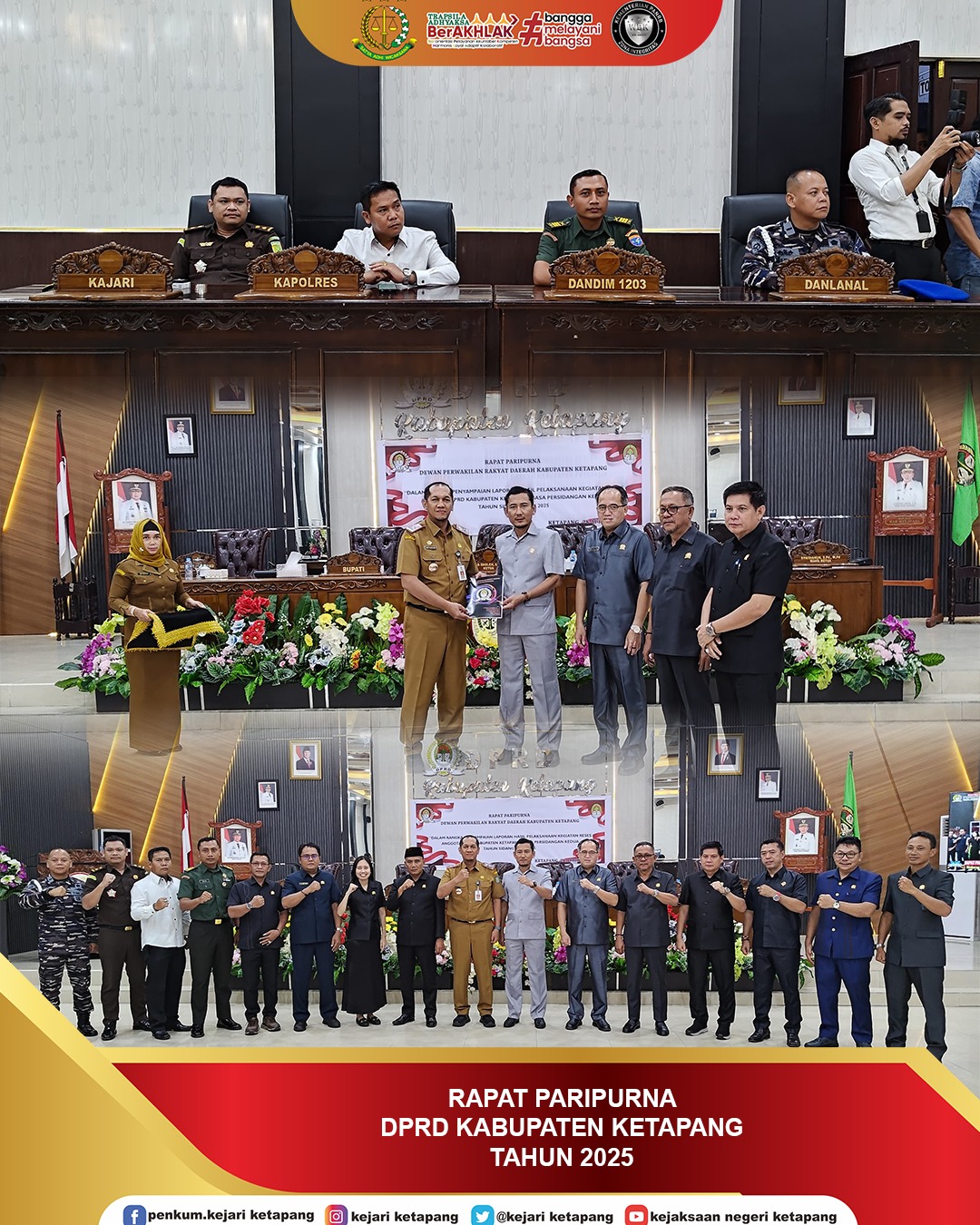 Bertempat di Ruang Rapat Paripurna DPRD Kabupaten Ketapang, Kepala Kejaksaan Negeri Ketapang diwakili oleh Bapak Panter Rivay Sinambela, S.H., M.H. menghadiri Rapat Paripurna Penyampaian Laporan Hasil Kegiatan Reses Pimpinan dan Anggota DPRD Kabupaten Ketapang Masa Persidangan Kedua Tahun Sidang 2024/2025.