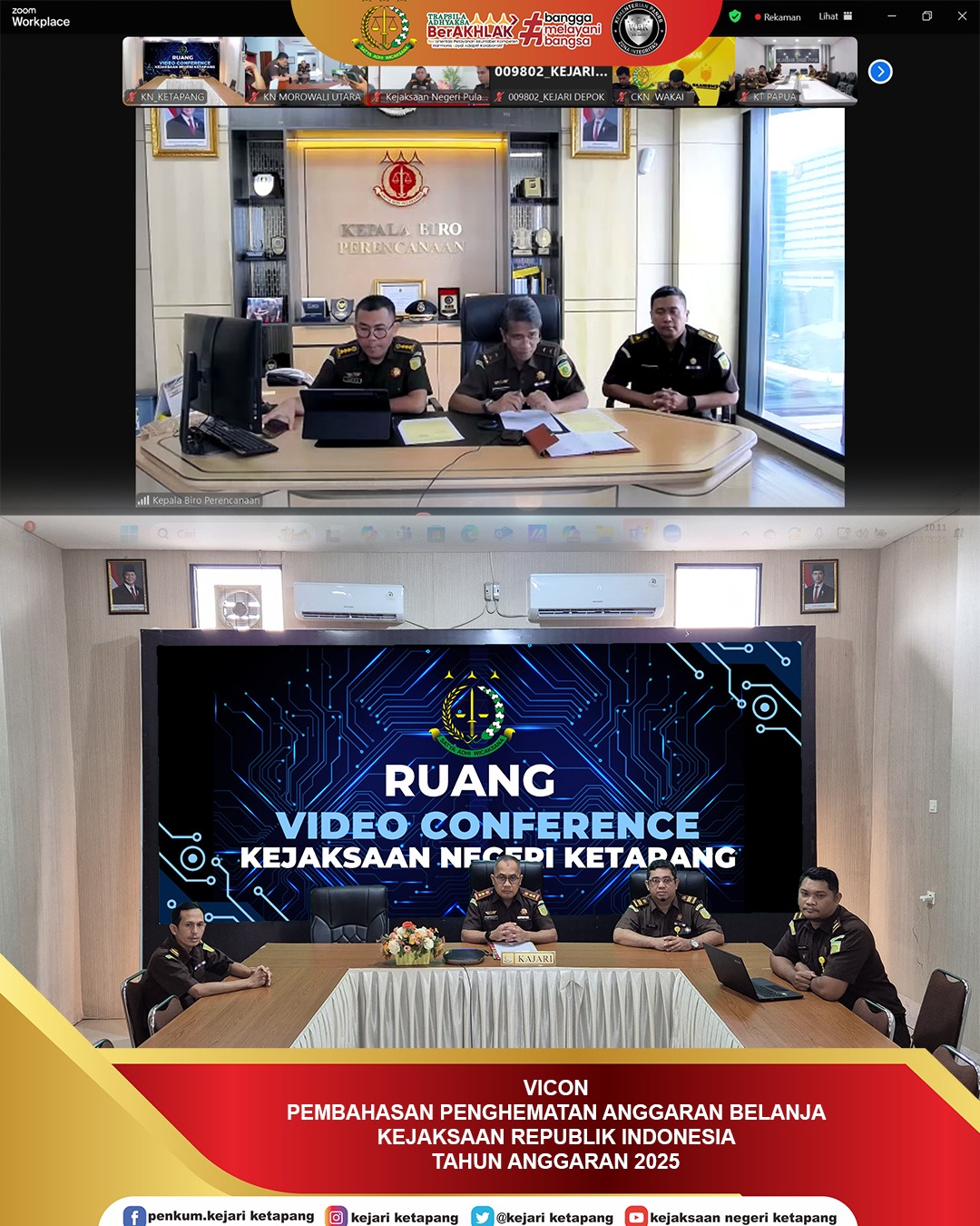 Bertempat di Aula Kantor Kejaksaan Negeri Ketapang. Kepala Kejaksaan Negeri Ketapang Bapak Anthony Nainggolan, S.H., M.H. didampingi Kaur TU, Kepegawaian, Keuangan dan PNBP, Efga Rinosya, A.Md serta Bendahara Pengeluaran, Pratama Burly, S.H., dan staff Pembinaan mengikuti Rapat Penghematan Anggaran Belanja Kejaksaan Republik Indonesia Tahun Anggaran 2025 melalui Video Conference.