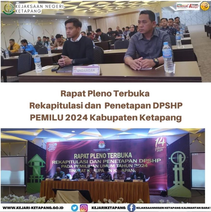 bertempat di Hotel Borneo Emerald Jalan Dr. Sutomo No. 68, Kelurahan Mulia Baru, Kecamatan Delta Pawan, Kabupaten Ketapang, Kalimantan Barat Jaksa Fungsional Kejaksaan Negeri Ketapang Nafathony Setya Muhammad Batistuta, S.H., Menghadiri Rapat Pleno Terbuka Rekapitulasi dan Penetapan Daftar Pemilih Sementara Hasil Perbaikan (DPSHP) KPU Kabupaten Ketapang Pada Pemilu Tahun 2024.