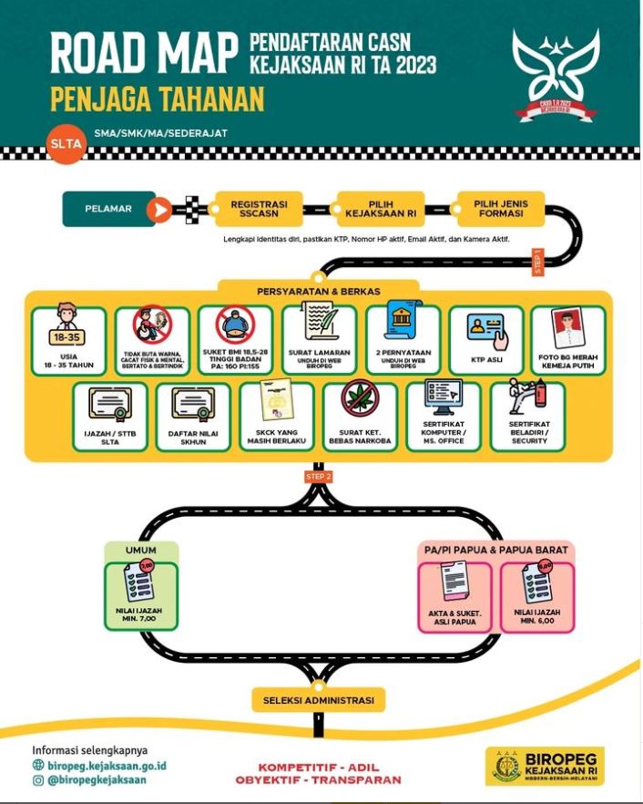 Menjadi insan Adhyaksa, tidak hanya akan dihadapkan pada tantangan, namun godaan yang tidak jarang akan mengikis nilai integritas, oleh karenanya, seleksi pengadaan CPNS Kejaksaan RI merupakan ajang pencarian talenta terbaik bangsa yang selain tangguh namun juga kuat dalam menjaga integritasnya. Dan Penjaga Tahanan akan dihadapkan pada tugas yang penuh tantangan dalam mengawal seluruh tahanan yang ditangani oleh Kejaksaan, baik tindak pidana umum, tindak pidana khusus seperti koruptor ataupun tindak pidana lainnya seperti gembong narkoba maupun terorisme.