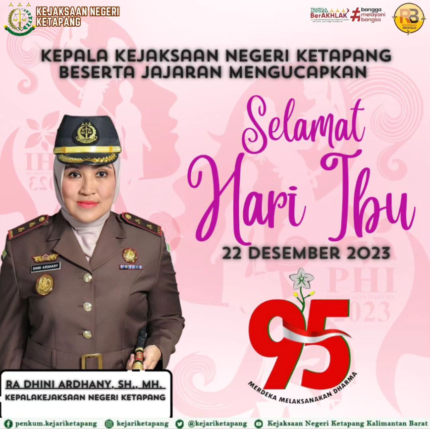 Kepala Kejaksaan Negeri Ketapang RA Dhini Ardhany, SH., MH beserta Jajaran Mengucapkan “Selamat Hari Ibu”
