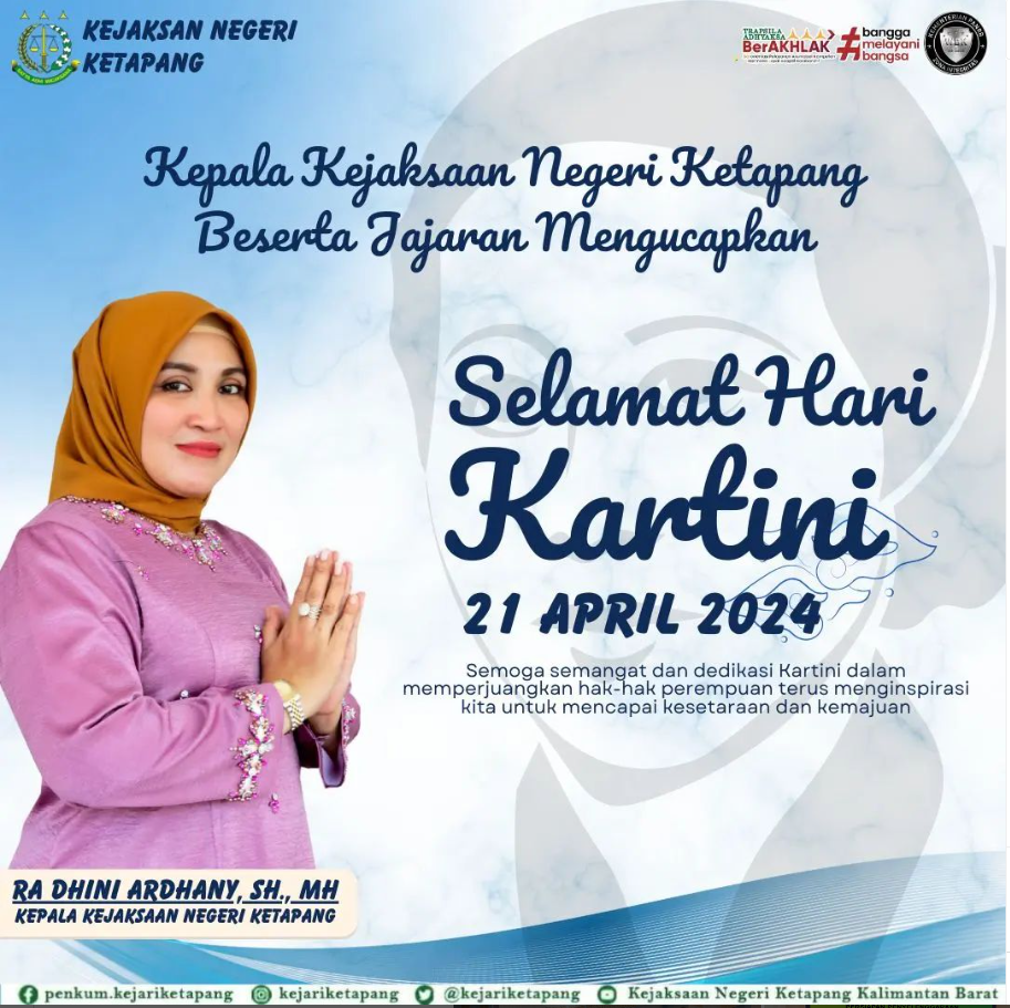 Kepala Kejaksaan Negeri Ketapang RA Dhini Ardhany, S.H., M.H beserta jajaran mengucapkan Selamat Hari Kartini.