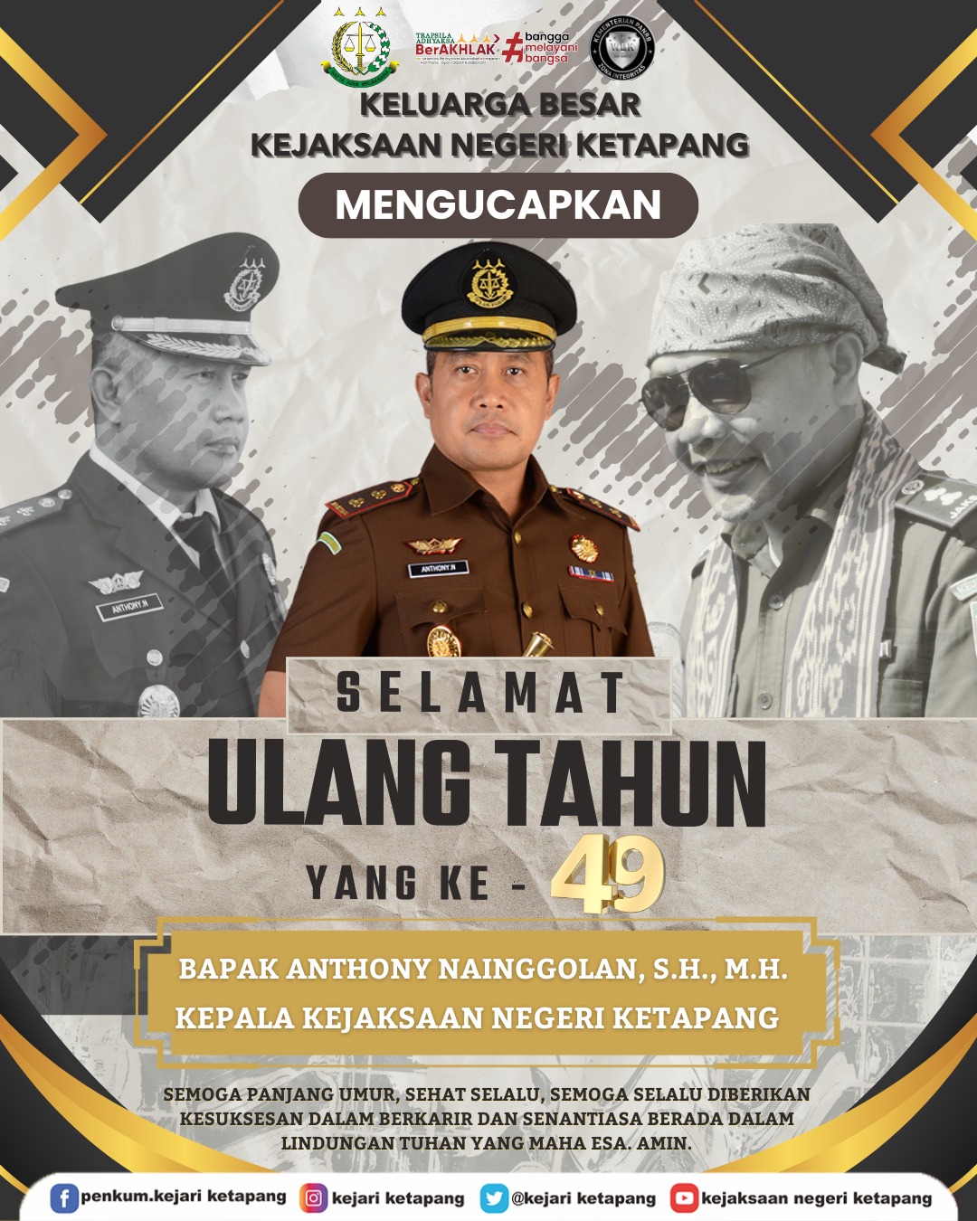 Keluarga Besar Kejaksaan Negeri Ketapang mengucapkan Selamat Ulang Tahun kepada Bapak Anthony Nainggolan, S.H.,M.H. Kepala Kejaksaan Negeri Ketapang ke – 49 Tahun.