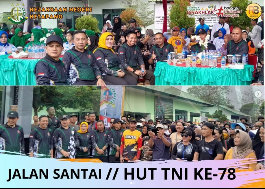 Bertempat di Makodim 1203 Ketapang Kepala Kejaksaan Negeri Ketapang RA Dhini Ardhany, S.H., M.H mengikuti Kegiatan Jalan Santai dan Panggung Prajurit Dalam Rangka HUT TNI ke – 78.