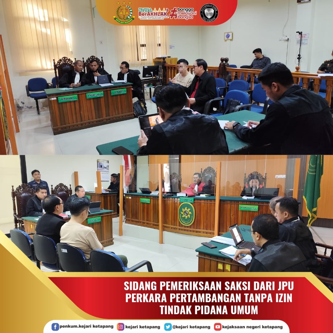 Bertempat di Ruang Sidang Pengadilan Negeri Ketapang, Jaksa Penuntut Umum pada Kejaksaan Negeri Ketapang Melaksanakan sidang Tindak Pidana Umum Perkara Penambangan tanpa Izin (Ilegal) di Dusun Pemuatan Bantu Desa Nanga Kelampai, Kec. Tumbang Titi, Kab. Ketapang yang dilakukan oleh Terdakwa dengan Inisial YH yang merupakan Warga Negara China, Adapun agenda persidangan pada hari ini adalah Pemeriksaan Saksi dari Jaksa Penuntut Umum.