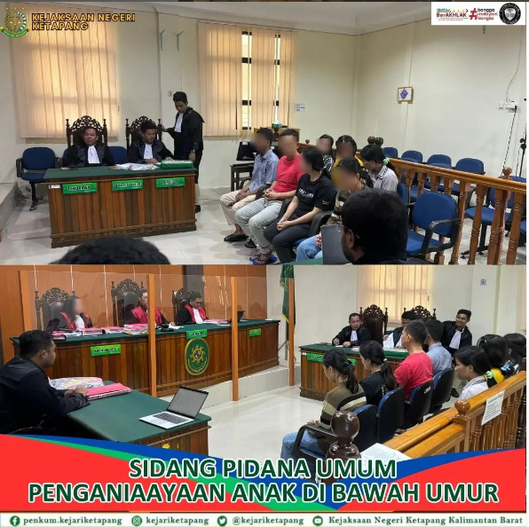 [Kamis, 20 Juni 2024] Bertempat di Ruang Sidang Pengadilan Negeri Ketapang, Jaksa Penuntut Umum pada Kejaksaan Negeri Ketapang Melaksanakan sidang Tindak Pidana Umum Perkara Kekerasan anak dibawah umur yang menyebabkan meninggalnya seorang anak perempuan atas nama Yesa Angelica yang terjadi di Kec. Sandai Kab. Ketapang yang dilakukan oleh SST als AK ( Ibu angkat korban ), YLT als AN ( Ayah Angkat Korban ), beserta MLS, V DS, AMP, DS, dan AA yang merupakan Karyawan di tempat usaha Ayah angkat Korban, dengan agenda persidangan mendengarkan Penyerahan Barang Bukti berupa video dari Pihak Penasehat Hukum Terdakwa dan dari Jaksa Penuentut Umum.