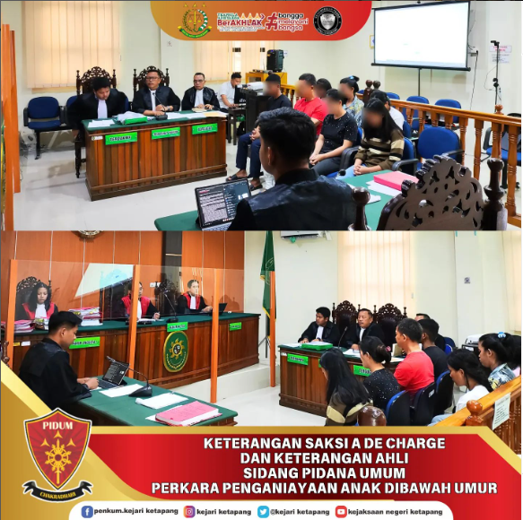 [Senin, 01 Juli 2024] Bertempat di Ruang Sidang Pengadilan Negeri Ketapang, Jaksa Penuntut Umum pada Kejaksaan Negeri Ketapang Melaksanakan sidang Tindak Pidana Umum Perkara Kekerasan anak dibawah umur yang menyebabkan meninggalnya seorang anak perempuan atas nama Yesa Angelica yang terjadi di Kec. Sandai Kab. Ketapang yang dilakukan oleh SST als AK ( Ibu angkat korban ), YLT als AN ( Ayah Angkat Korban ), beserta MLS, V DS, AMP, DS, dan AA yang merupakan Karyawan di tempat usaha Ayah angkat Korban, dengan agenda persidangan Permohonan Restitusi dan Keterangan Saksi a de charge.