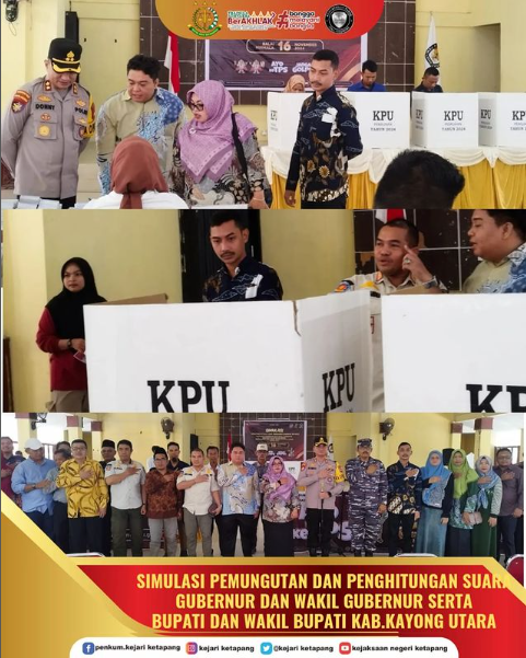 Kepala Kejaksaan Negeri Ketapang di wakili oleh Kepala Sub Seksi, Ideologi, Politik Pertahanan Keamanan Sosial Budaya Dan Kemasyarakatan, Teknologi Informasi, Produksi Intelijen Dan Penerangan Hukum Rizky Adi Pratama, S.H., menghadiri Simulasi Pemungutan dan Perhitungan Suara Pemilihan Gubernur dan Wakil Gubernur serta Bupati dan Wakil Bupati Kayong Utara Tahun 2024.