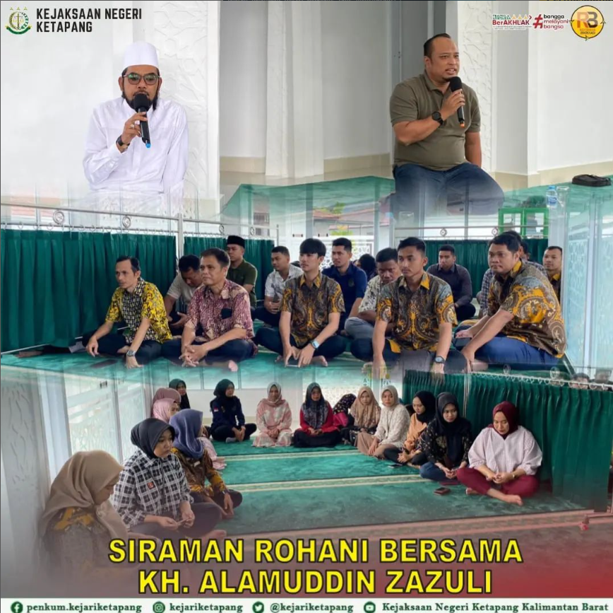 Pegawai Kejaksaan Negeri Ketapang mengikuti Siraman Rohani bersama KH. Alamuddin Zazuli di Surau Al-amin Kejaksaan Negeri Ketapang.