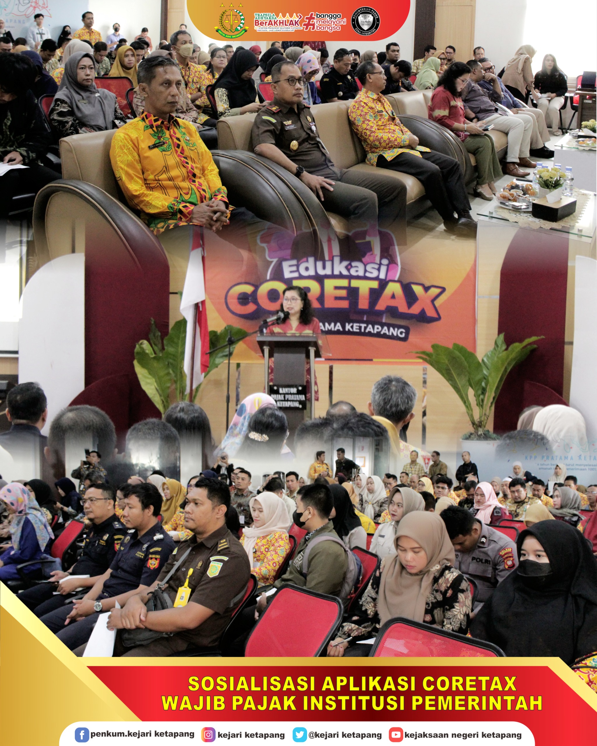 Bertempat di Aula Kantor Pelayanan Pajak Pratama Ketapang, Kepala Kejaksaan Negeri Ketapang Bapak Anthony Nainggolan, S.H., M.H. menghadiri Sosialisasi Aplikasi Coretax Wajib Pajak Institusi Pemerintah.