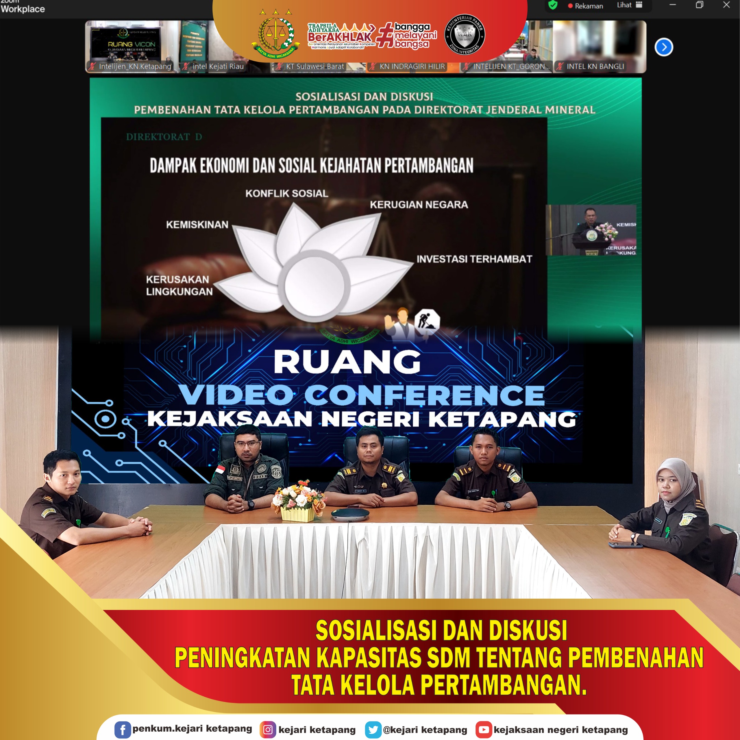 Bertempat di Ruang Vicon Kantor Kejaksaan Negeri Ketapang, Kepala Subseksi Ekonomi, Keuangan, dan Pengamanan Pembangunan Strategis Arief Wirawan Atmaja S.H., dan Jaksa Fungsional Junior Jhon Wilem Latumeten, S.H beserta Staff Intelijen Kejaksaan Negeri Ketapang, mengikuti Sosialisasi dan Diskusi Peningkatan Kapasitas SDM tentang Pembenahan Tata Kelola Pertambangan.
