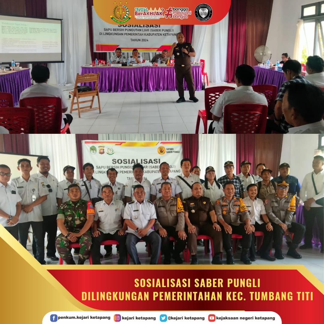 Bertempat di Aula Kantor Kecamatan Tumbang Titi Kab. Ketapang, Kepala Kejaksaan Negeri Ketapang diwakili oleh Kepala Seksi Tindak Pidana Umum, Novan Arianto, S.H., M.H, menjadi narasumber pada kegiatan Sosialisasi Saber Pungli dengan tema “Pungli Kenali, Hindari” di lingkungan pemerintah Kec. Tumbang Titi Kabupaten Ketapang.