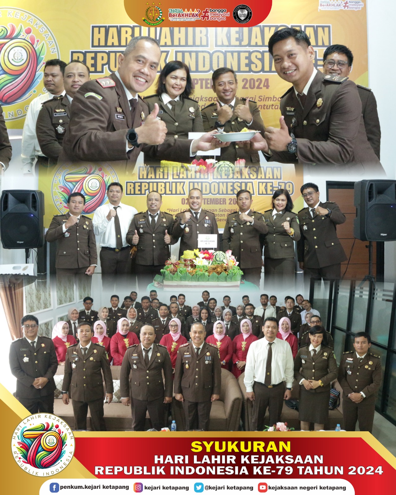 Kepala Kejaksaan Negeri Ketapang Bapak Anthoni Nainggolan, S.H., M.H., beserta Para Kasi dan Kasubag, Pengurus dan jajaran Anggota Ikatan Adhyaksa Dharmakarini (IAD) Daerah Ketapang serta Pegawai Kejaksaan Negeri Ketapang menggelar Syukuran Peringatan Hari Lahir Kejaksaan Republik Indonesia ke-79 Tahun 2024, dengan tema ” Hari Lahir Kejaksaan Sebagai Simbol Terwujudnya Penuntutan dan Advocaat General“.