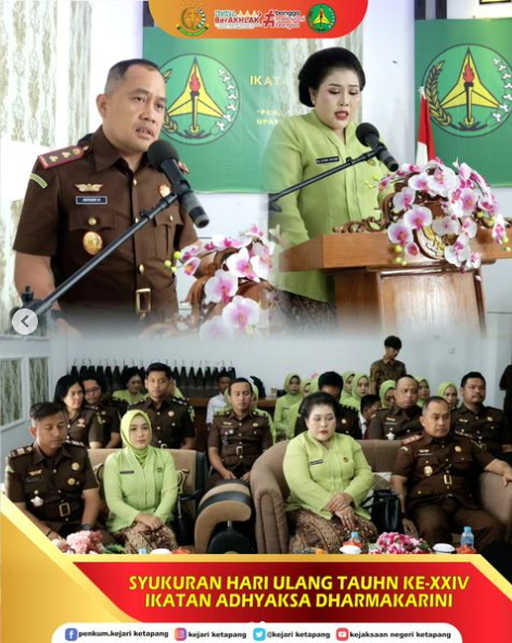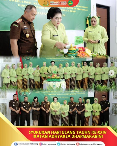 Kepala Kejaksaan Negeri Ketapang Bapak Anthoni Nainggolan, S.H., M.H., Ketua Ikatan Adhyaksa Dharmakarini (IAD) Daerah Ketapang Ny. Letare Anthoni Nainggolan beserta Para Kasi dan Kasubag, Pengurus dan jajaran Anggota Ikatan Adhyaksa Dharmakarini (IAD) Daerah Ketapang serta Pegawai Kejaksaan Negeri Ketapang menggelar Syukuran HUT XXIV Ikatan Adhyaksa Dharmakarini (IAD).
