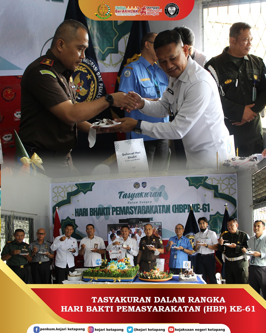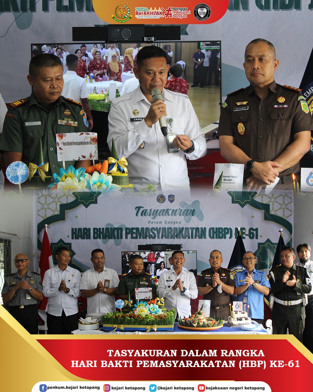 Bertempat di Aula Lapas Kelas II B Ketapang, Kepala Kejaksaan Negeri Ketapang Bapak Anthony Nainggolan, S.H., M.H. menghadiri kegiatan Tasyakuran HBP Ke 61 dengan Tema “Meningkatkan Integritas dan Profesionalisme Sebagai Insan Pemasyarakatan”.
