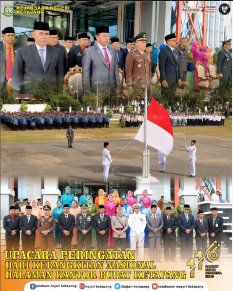 [Senin, 20 Mei 2024] Bertempat di Halaman Kantor Bupati Ketapang, Kepala Kejaksaan Negeri Ketapang diwakili oleh Kepala Sub Bagian Pembinaan Andhika Fery Kurniawan, S.H, mengikuti Kegiatan Upacara Peringatan Hari Kebangkitan Nasional ke-116 tahun 2024 dengan Tema “Bangkit Untuk Indonesai Emas”.