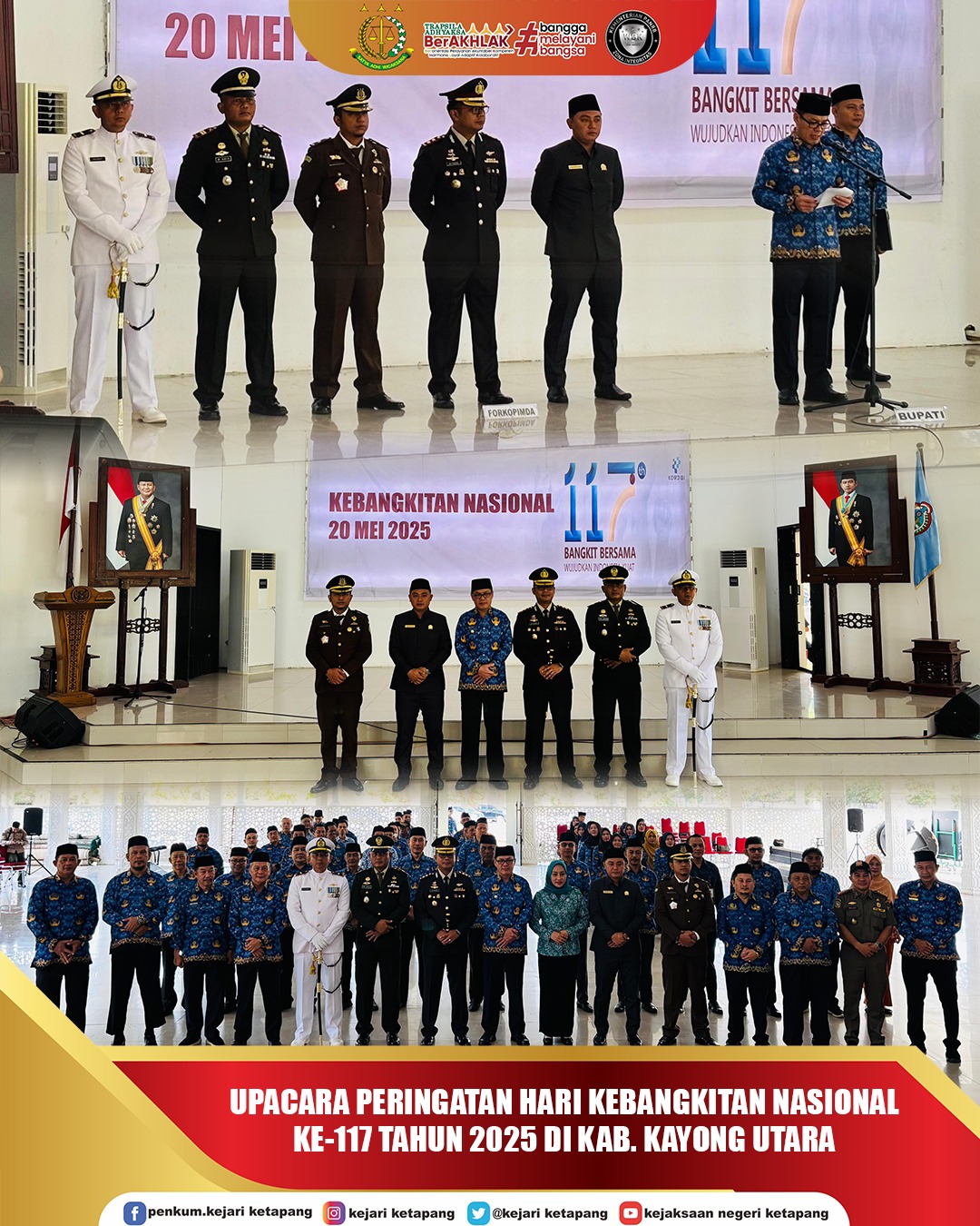 Bertempat di Gedung Istana Rakyat (Pendopo Bupati Kayong Utara), Kepala Kejaksaan Negeri Ketapang diwakili oleh Kepala Seksi Perdata dan Tata Usaha Negara, Dhimas Mahendra, S.H., M.H. menghadiri Upacara Hari Kebangkitan Nasional Ke-117.