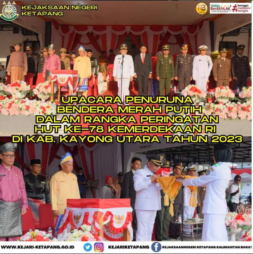 Bertempat di Halaman Kantor Dinas Pendidikan Kecamatan Sukadana, Kabupaten Kayong Utara. Kepala Seksi Perdata dan Tata Usaha Negara, Samuel Fernandes Hutahayan, S.H. Menghadiri Upacara Penurunan Bendera Merah Putih dalam Rangka Peringatan HUT Ke-78 Kemerdekaan RI Tahun 2023 di Kabupaten Kayong Utara, dengan Tema “TERUS MELAJU UNTUK INDONESIA”.