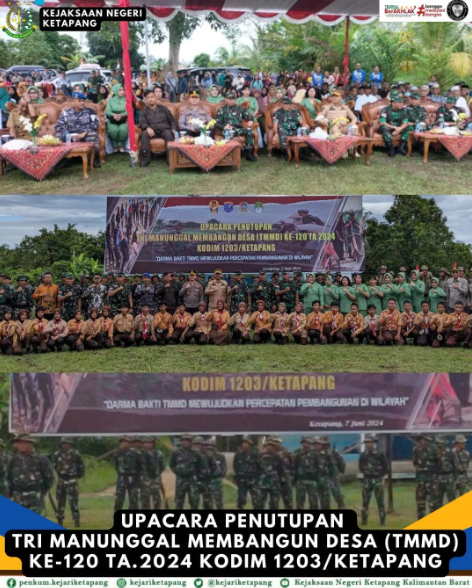 Kepala Kejaksaan Negeri Ketapang diwakili oleh Kepala Seksi Perdata dan Tata Usaha Negara Dhimas Mahendra W S.H., M.H Mengikuti Upacara Penutupan Tri Manunggal Membangun Desa (TMMD) Ke-120 TA. 2024 Kodim 1203/Ketapang.