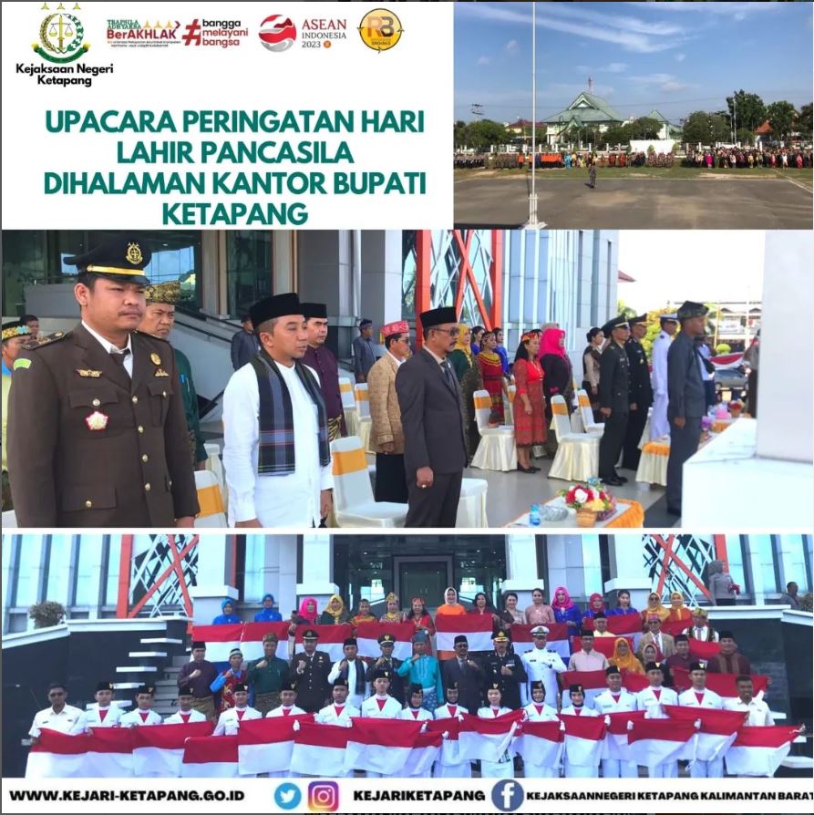 Bertempat di Halaman Kantor Bupati Kabupaten Ketapang Jalan. Jendral Sudirman No.37, Kelurahan Mulia Baru, Kecamatan Delta Pawan, Kabupaten Ketapang Kepala Seksi Intelijen Kejaksaan Negeri Ketapang Panter Rivay Sinambela, S.H menghadiri Upacara Peringatan Hari Lahir Pancasila Tahun 2023 Kabupaten Ketapang.