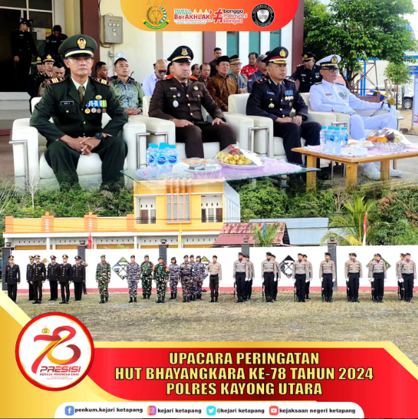 Kepala Kejaksaan Negeri Ketapang diwakili oleh Kasubsi Penuntutan, Eksekusi, dan Eksaminasi, Panji Bangun Indrianto, S.H. menghadiri Upacara Peingatan Hut Bhayangkara ke – 78 tahun 2024.