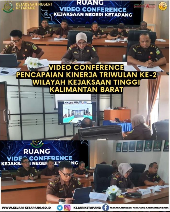 Bertempat di Aula Kejaksaan Negeri Ketapang, Kepala Kejaksaan Negeri Ketapang Ibu RA.Dhini Ardhany, S.H., M.H. beserta para Kasi, Kasubag Pembinaan dan Bendahara, Mengikuti Video Conference Pencapaian Kinerja Triwulan Ke-2 Wilayah Kejaksaan Tinggi Kalimantan Barat Tahun 2023.